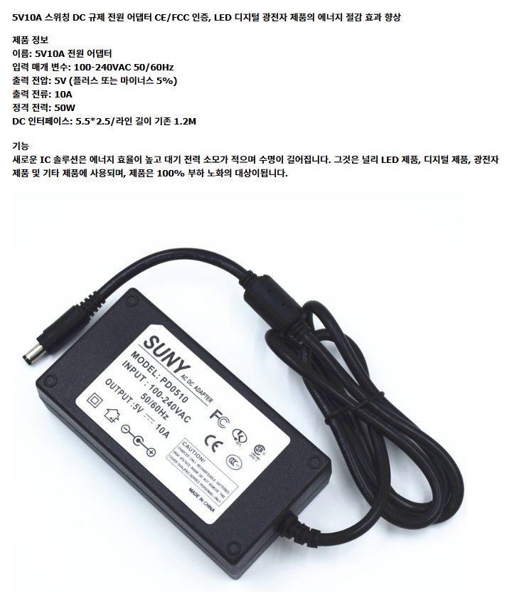 LED 전광품 제품은 전류를 많이 소모하기 때문에 고전류 어댑터가 필요합니다.