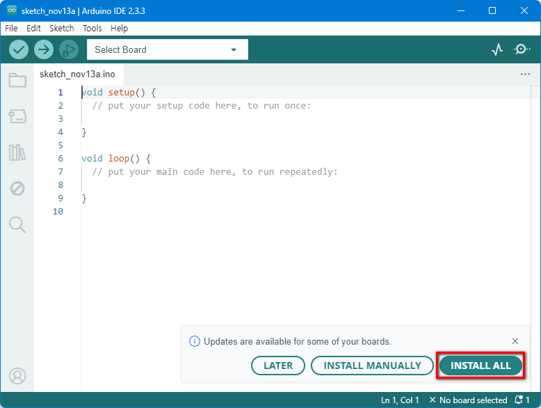 INSTALL ALL 을 클릭하여 boards 정보를 다운로드 받습니다.