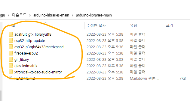 라이브러리를 받아서 압축을 푼 후에 arduino 라이브러리 위치에 넣는다.